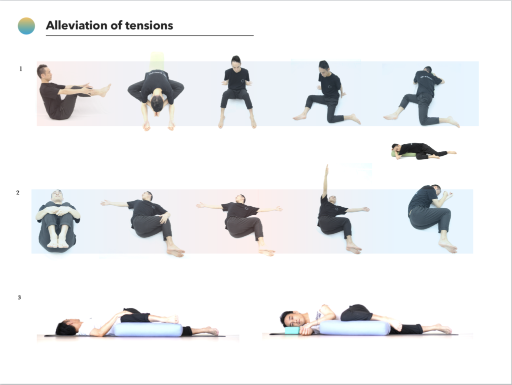 Relaxationのフェーズ(床と身体の接している面積多め、筋肉の緊張度を下げていくポーズ)