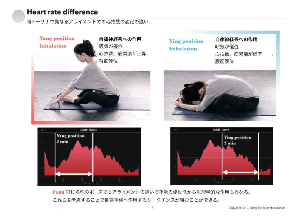 などのように、心拍数を上げたいのか下げたいのかをしっかりガイドの言葉に乗せてコントロールしていく必要があるのです。