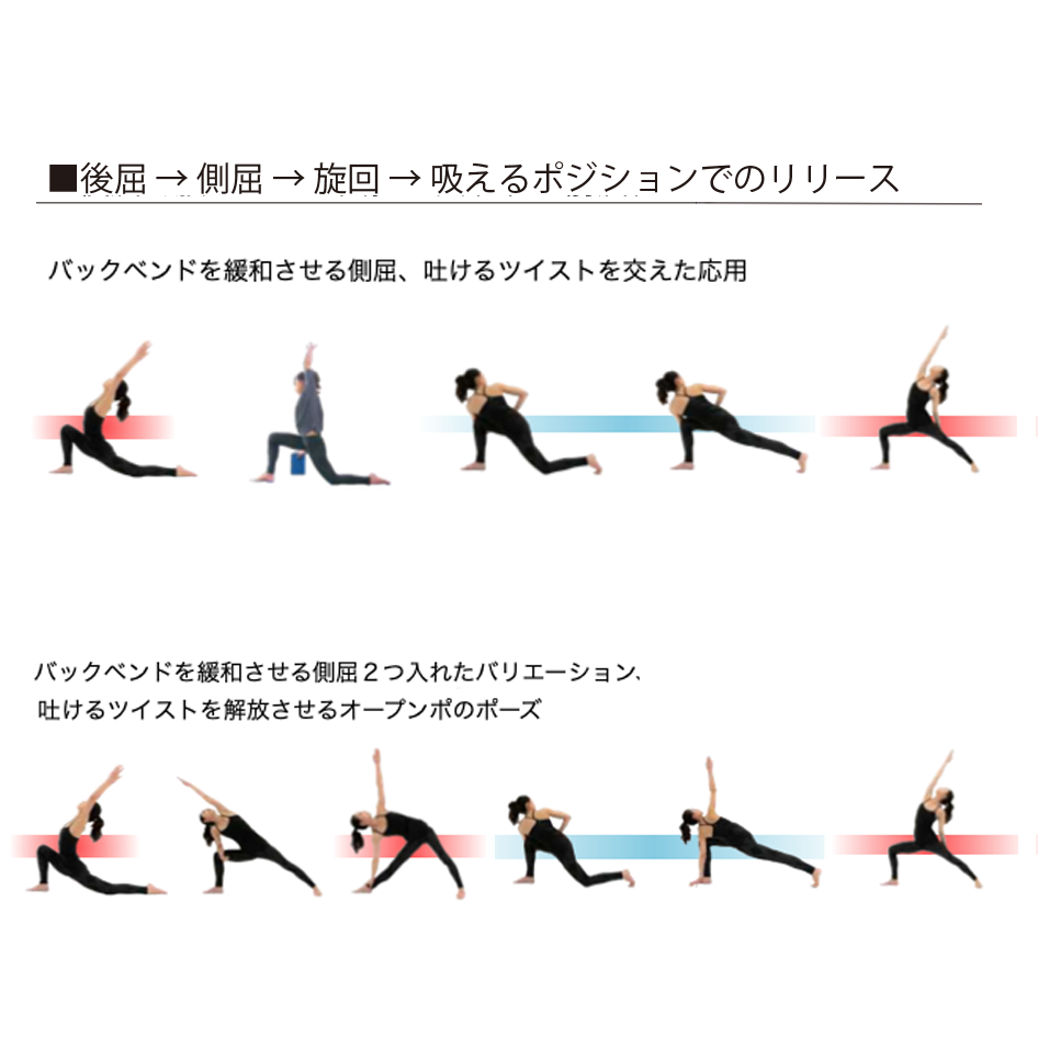 側屈のアーサナを後屈の後に配置するシークエンスは、腰方形筋へのストレッチ効果が最も高いヴィンヤサのシークエンスと言えるでしょう。