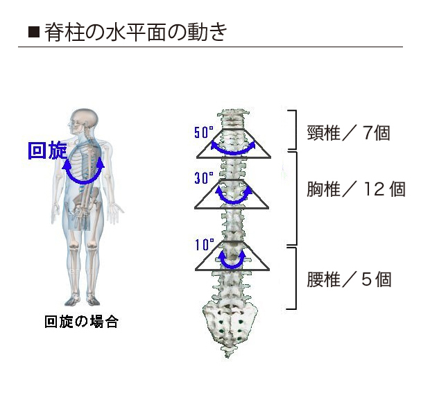 そして、水平面の動きは、実は腰椎はあまり得意でないということがわかります。