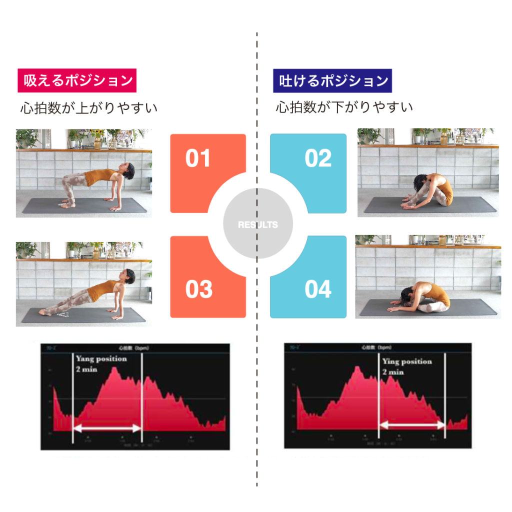 吸えるポジションと吐けるポジションの交互の配置は、自律神経へダイレクトに影響します。どのような状態に導きたいのかを明確にして、狙い通りに配置しましょう。