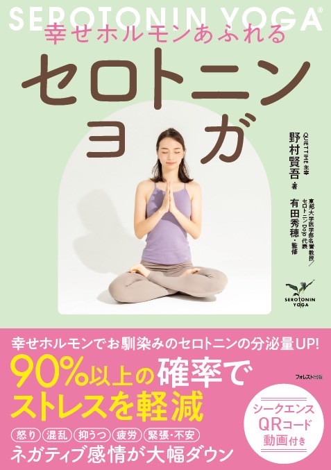 セロトニンヨガは血液検査でセロトニンの分泌やストレスの軽減などを日本で最も科学的な検証で証明した新しいスタイルのヨガです。これまでの活動が認められ検証内容や呼吸を深める効果的なシークエンスを初心者の方でも楽しめる内容の書籍として出版されます。モデルはセロトニンヨガ指導者育成コースでも講師を担当しているレミ先生が担当してくれました。初めての方でも体験出来るよう動画QRコードが付いています。