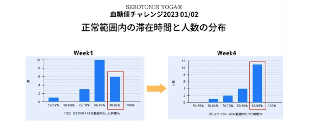 セロトニンヨガ®︎で行われている血糖値チャレンジでは、参加者の血糖値を24時間モニタリングし、データを収集しています。前回の血糖値チャレンジでは、セロトニンヨガの定期的な実践が血糖値の安定に関与する可能性が示唆されました。これは、